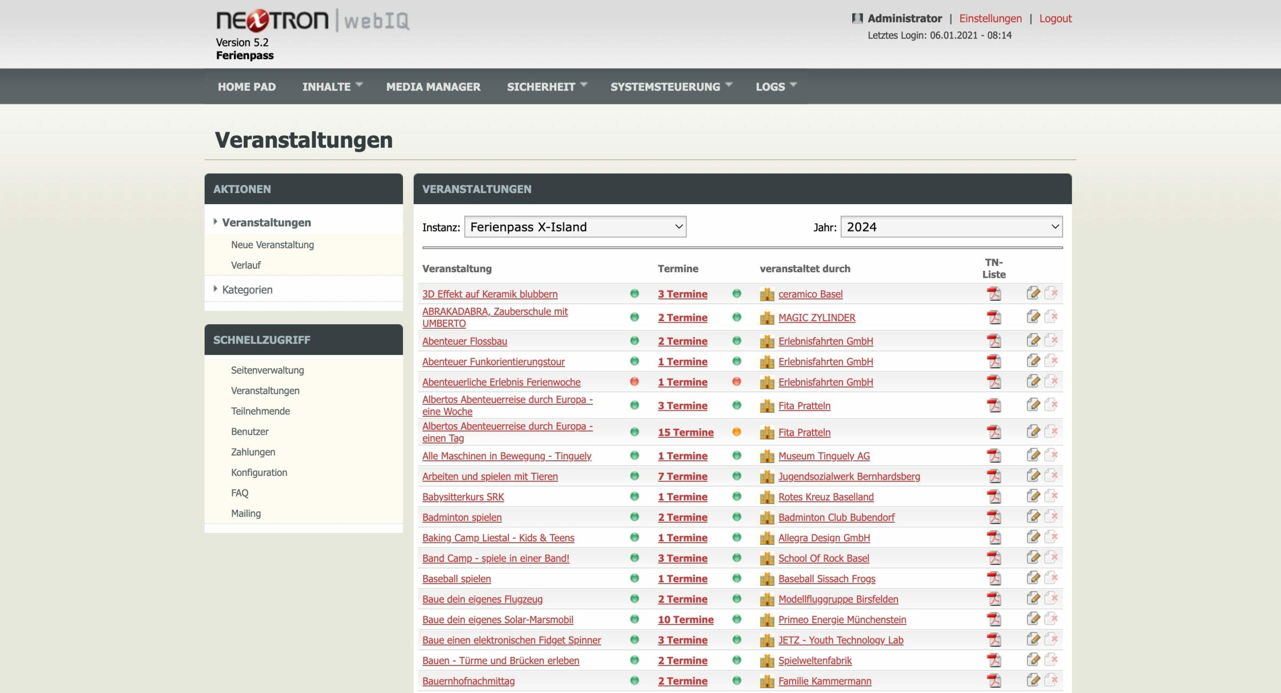 Komplettlösung für den Ferienpass mit Verwaltung von Veranstaltungen und Teilnehmern, basierend auf webIQ…